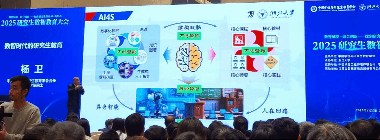 2025年11月6日至7日,以“数智赋能·融合创新——探索研究生教育AI+新形态”为主题的2025年研究生数智教育大会在杭州成功召开。会议由中国学位与研究生教育学会主办,浙江大学承办,吸引了全国约360所高校的千余名专家学者参与,共同探讨数智技术与研究生教育深度融合的路径与前景。我校水产学院硕士研究生导师代表陈世喜博士与史庆超博士参会学习。