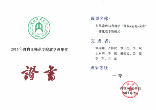 本成果获四川省第八届高等教育优秀教学成果奖三等奖、内江师范学院教学成果奖一等奖。