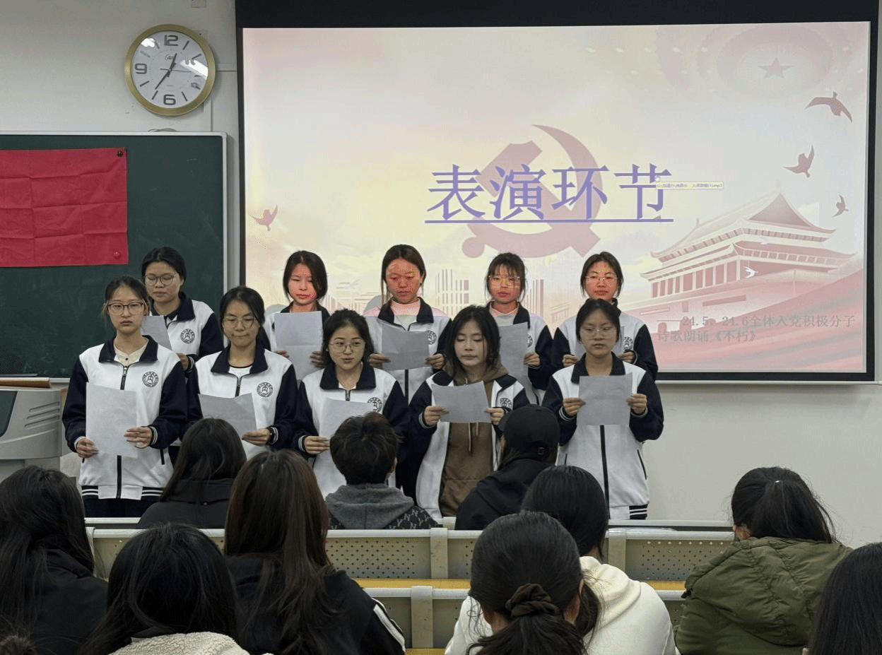 活动在庄严国歌声中拉开帷幕,政治领学环节,全体成员共同学习《关于在全党开展树立和践行正确政绩观学习教育的通知》,深刻领会相关精神与工作要求。随后,诗朗诵《不朽》深情缅怀革命先烈,赞颂英雄精神,激发在场人员的爱国情怀与使命担当。知识问答环节紧扣主题、以赛促学,有效检验学习成效,强化理论武装,营造了比学赶超、以学促行的良好氛围。最后,大家结合自身交流感悟,纷纷表示当代青年应立足实际、不务虚功,坚持以解决实际问题为导向,脚踏实地、久久为功,以实干实绩书写无愧于时代的青春篇章。